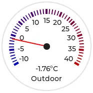Section titled “Thermometer semicircle”And here’s the same sensor configuration, but instead with a semicircle gauge with a gradient background drawn by a multitude of ticks: